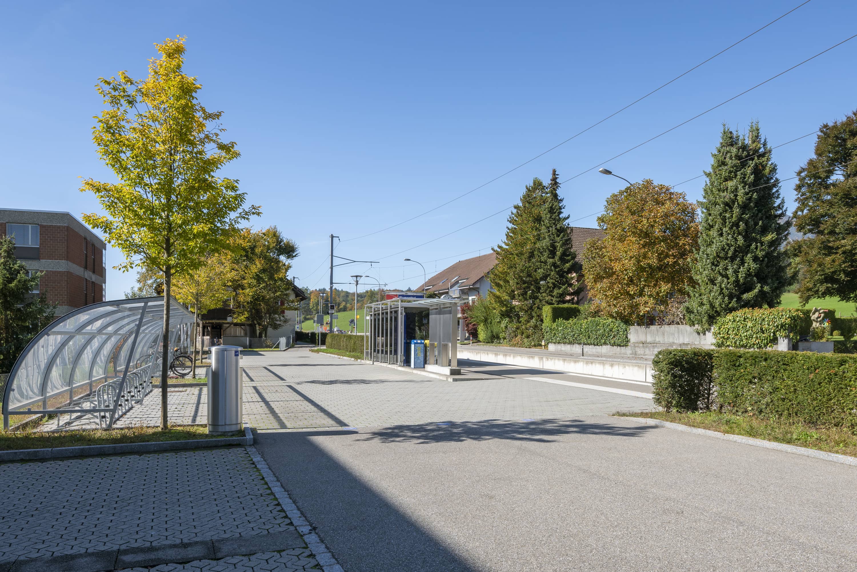 Damit die fünf Bahnübergänge aufgehoben werden konnten, wurde eine rückwärtige Erschliessung zwischen der Rötistrasse und dem neuen Bahnhofparkplatz erstellt.